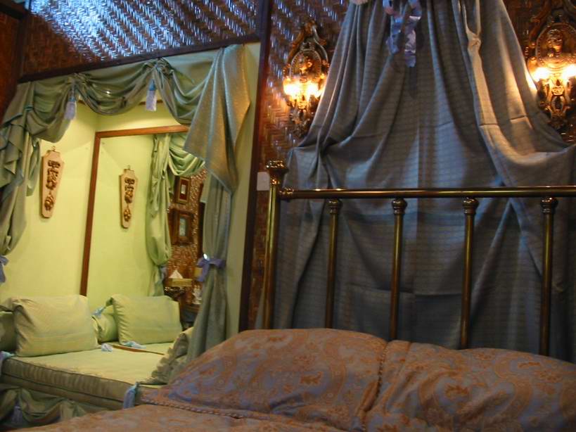 Batavia was the name of Jakarta during the Dutch colonial period in Indonesia. The room design is based on colonial Javanese style. The centerpiece is an eighty-year-old solid brass bed with a white cloth drape streaming from a corona bed decoration above like a princess crown. Romantic ambience permeates every corner of the room. Rose gardens blossom on two sides by the porch. The sidewall extending to two glass windows under the sidewall gable gives the feeling of the high ceiling in a chapel. The name Batavia Princess depicts the room well.